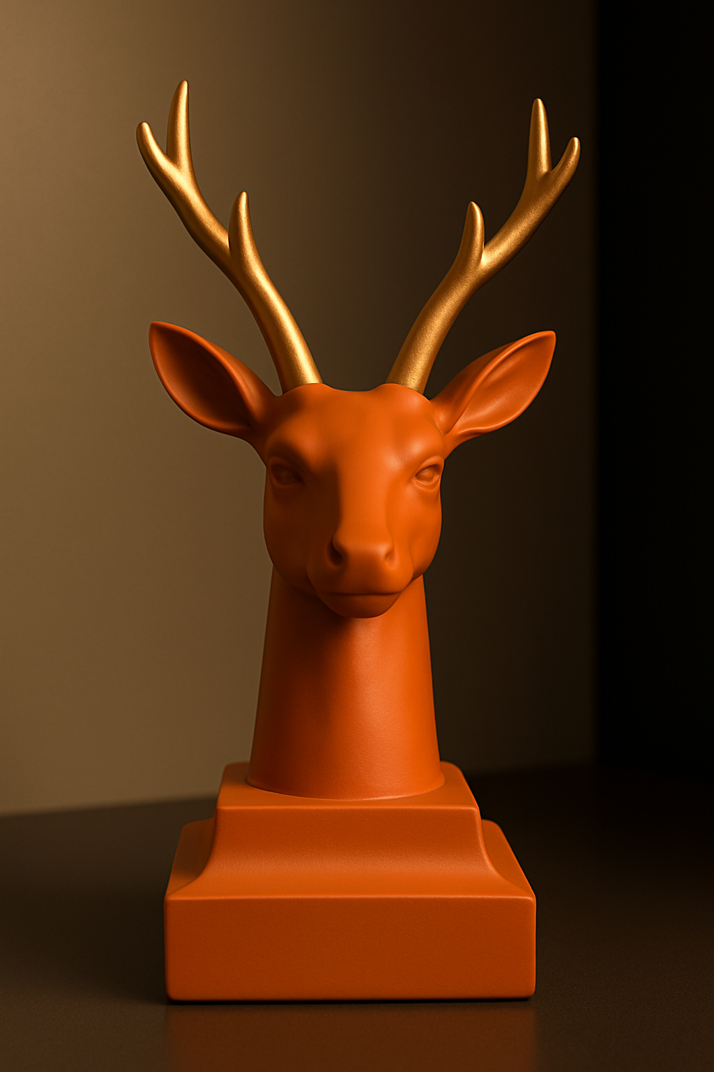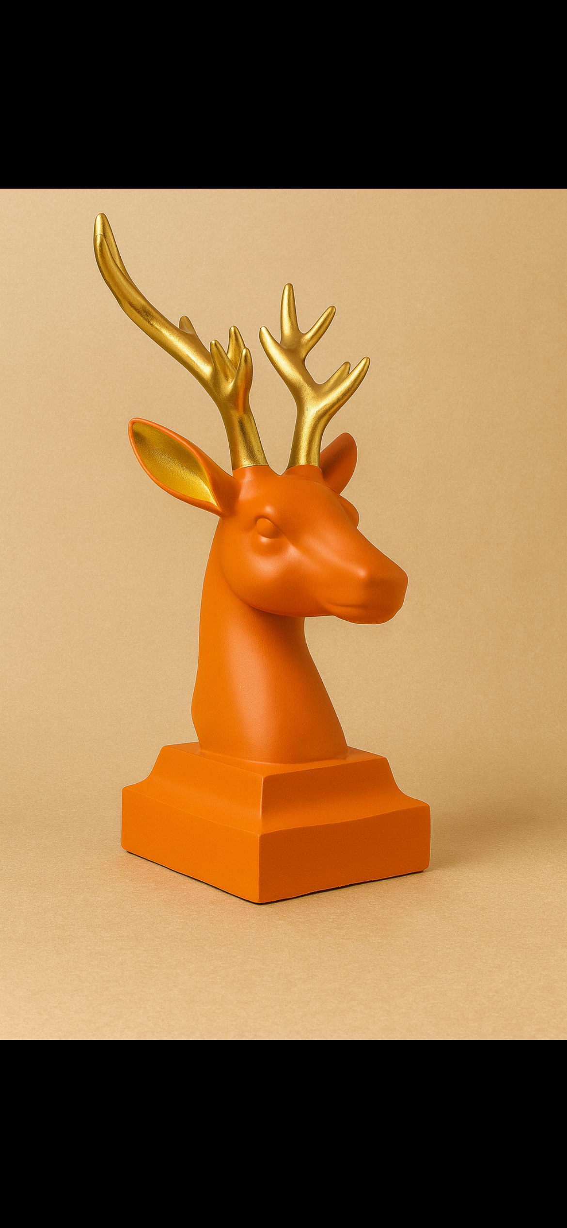 Amber Majesty is a timeless statement of elegance and power, capturing the serene strength of nature in sculpted perfection. Crafted from fine resin, this piece features a warm amber hue contrasted with subtle golden antlers—symbolizing balance, grace, and quiet regality.